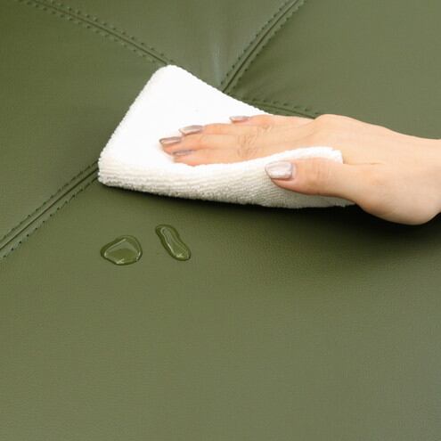 渋めのカラーリングとボリューミーな見た目がお部屋に重厚感を持たせます。座面は幅107×奥行53cmでゆったりとしており、胡坐をかくこともできる快適な広さです。ウェービングベルトとウレタンフォームでしっかりとホールド。座面も同様に沈み込み過ぎないほど良い弾力で快適な座り心地です。ゆったり体を預けられるひじ掛けは寝転んだときの枕代わりにもなります。ソリッドなデザインのスチール脚でスッキリとスタイリッシュな印象を与えてくれます。牛皮と合成皮革を合わせた張り材を使用しているため、水が染み込みにくく安心してご使用いただけます。