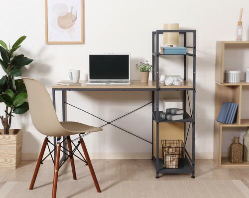 余分な装飾をなくしたシンプルなデザインで、飽きずに長く使える多目的デスクです。幅110cmとパソコンや本などを置いてもゆったりとスペースを取って使用できます。勉強机やパソコンデスクにピッタリです。3段の収納ラックが一体になったデザインで、いつも使うものを手の届く範囲にまとめておくことができます。収納ラックは天板の左右どちらでも設置できるので、お部屋に合わせてご使用いただけます。日本人が作業しやすいとされる高さ72cmのデスク。一般的な肘付きのチェアでも使いやすい高さです。脚部のアジャスターを回すことで高さの微調整が可能。組立や設置の際に発生してしまった「ガタつき」を解消できます。