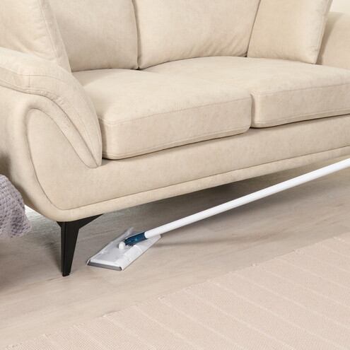 ボリュームのあるデザインのソファですが、ブラックスチールの細い脚が引き締まった印象に見せてくれます。張り材は国内メーカーとの共同開発で実現した抗菌仕様。引っかき傷に強い素材と滑らかな肌触りが特徴です。座面は幅100×奥行71cmの2人掛けサイズ。あぐらをかいたり、深く腰掛けたりと自由にリラックスできます。腕をゆったり預けてリラックス。横向きではしっかり背もたれに。クッションも2個付属していて快適にお使いいただけます。ポケットコイルが入った座面はしっかりとした座り心地で、シリコンフィル入りの背もたれは柔らかく腰当たりの良いソファです。ソファの下は柄の長い掃除用品やロボット掃除機も通れます。埃が溜まりやすいソファの下を綺麗に保つことができます。