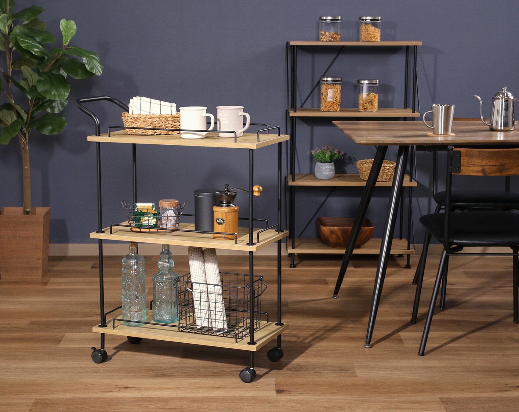 EZBOツイストロック キッチンカート オークナチュラル
