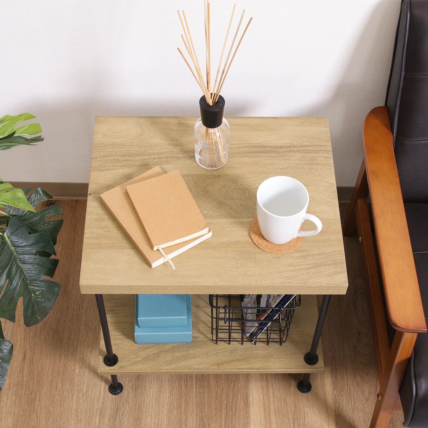 板の穴にワイヤーフレームを差し込みねじ込むだけで完成する「ツイストロックシステム」を採用したシリーズで、手軽におしゃれなインテリアを楽しめます。落ち着いた色味の木目とブラックスチールを合わせた相性の良い組み合わせで、お部屋にも馴染みます。高さ48cmでソファなどにも合わせて使いやすい。A4サイズのファイルや雑誌なども立てて収納できます。幅47×奥行40cmの広々とした天板は飲み物やお菓子、雑誌などを余裕をもって置くことができます。リビングだけでなく、ベッドサイドや玄関先など様々な場所で活躍します。