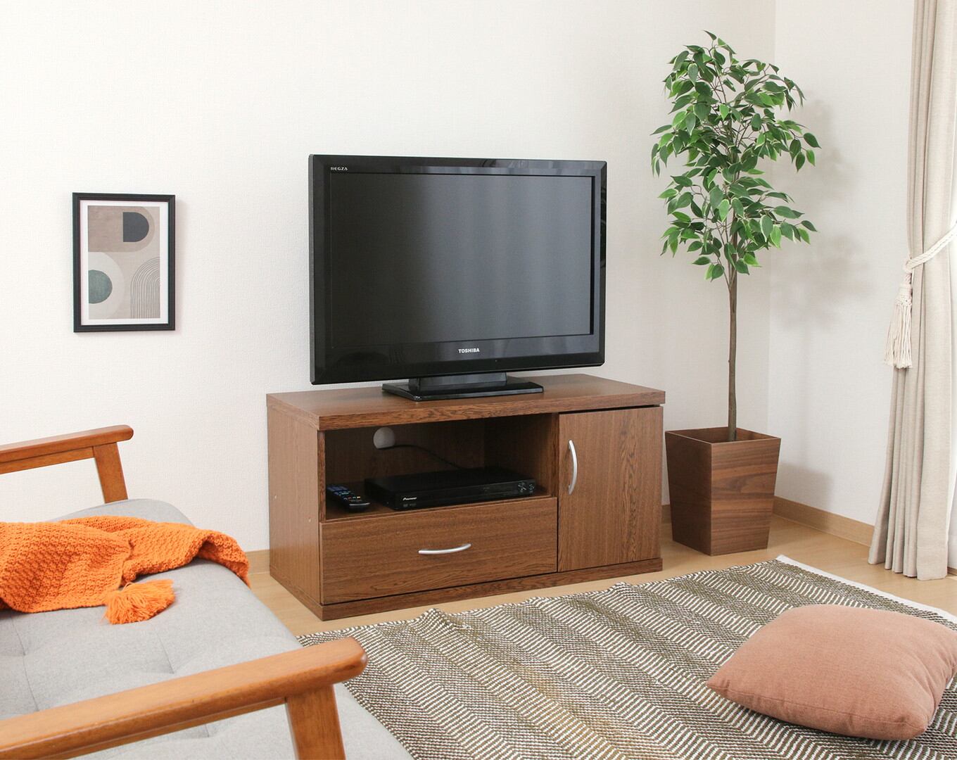 シンプルなデザインで、どんなお部屋にも優しく馴染みます。幅89×奥行41.5cmで、ワンルームでも使いやすいサイズ感。オープン収納スペースは、AV機器やゲーム機などの収納に◎幅27×奥行35.5×高さ38.5cmの扉部収納は、リモコンや小物類をすっきり収納!幅52.5×奥行32×高さ14cmの引き出しには、DVDやブルーレイのディスクをたっぷり収納できます。オープンスペースの背面にはコード穴がついており、配線を通すことができます。