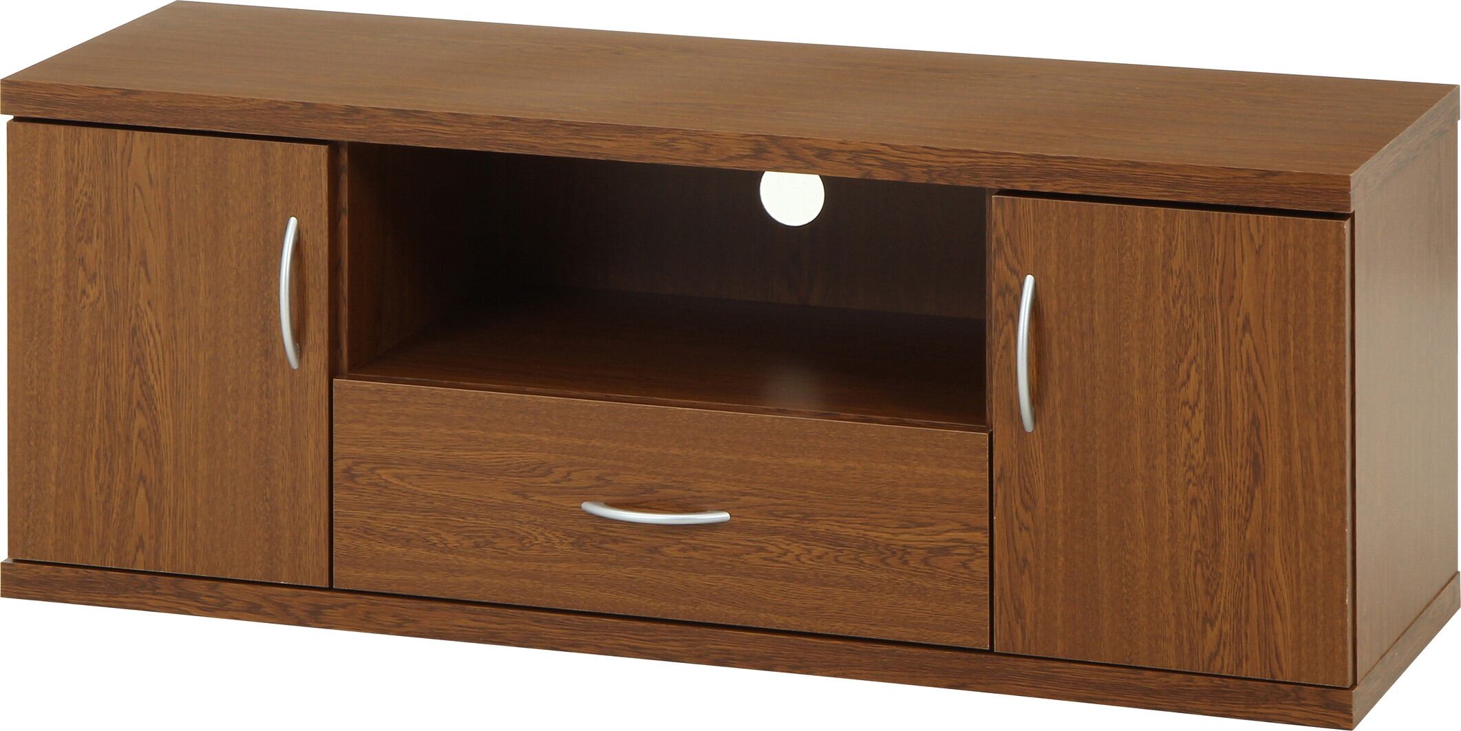 シンプルなデザインで、どんなお部屋にも優しく馴染みます。幅118×奥行41.5cmで37型テレビまで対応可能。収納もたっぷりですっきり片付きます。幅56×奥行35.5×高さ20cmのオープン収納スペースは、AV機器やゲーム機などの収納に◎幅27×奥行35.5×高さ38.5cmの扉部収納は、リモコンや小物類をすっきり収納!幅52.5×奥行32×高さ14cmの引き出しには、DVDやブルーレイのディスクをたっぷり収納できます。オープンスペースの背面にはコード穴がついており、配線を通すことができます。