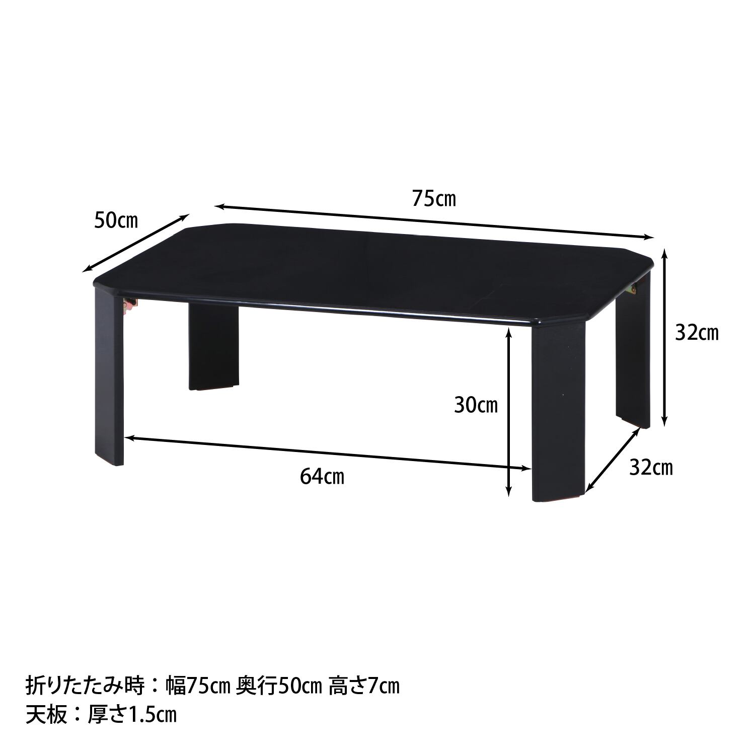 天板や脚がフラットなデザインの、スタイリッシュでシンプルなローテーブルです。幅75×奥行50cmの天板で、ひとり暮らしやワンルームなどに最適なサイズ感です。天板にはUV塗装を施しておりキズがつきにくく、また鏡のような高級感のある仕上がりに。折りたたんだ時の厚さが7cmなので隙間に収納可能です。ストッパーがついており勝手に閉じて怪我をする心配がありません。脚裏にはすべり止めがついているので、床のキズ防止にも役立ちます。