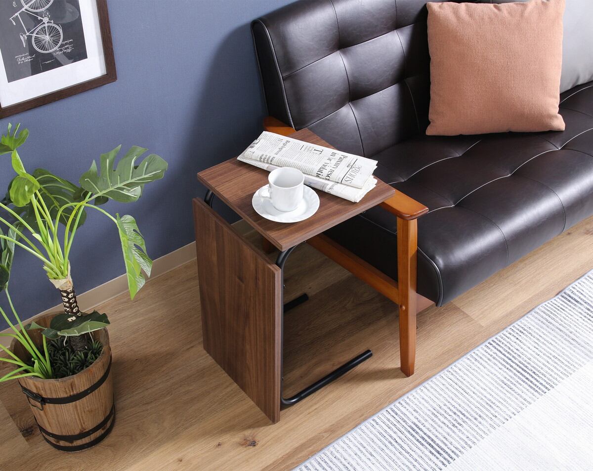 木の温もりが感じられる木板と全体をぎゅっと引き締めるブラックスチールの相性がバツグンのスマートなデザインです。ソファやベッドの下に脚が差し込めるので、天板をぐっと引き寄せて使用することができます。縦置きにすると高さ53.5cmでソファの傍に置くとちょうどいい高さ。飲み物やスマホなど気軽に置けて便利♪広い面を天板にするとちょっとしたセンターテーブルに。使う場所や用途に応じて、使い分けることができます。横置きにすると天板は幅48×奥行30cmでパソコンも置けるサイズ感です。家具の組み立て初心者さんでも10分程度で組立つ簡単仕様です。