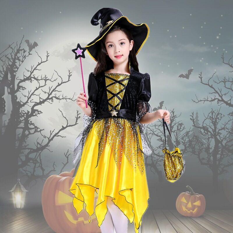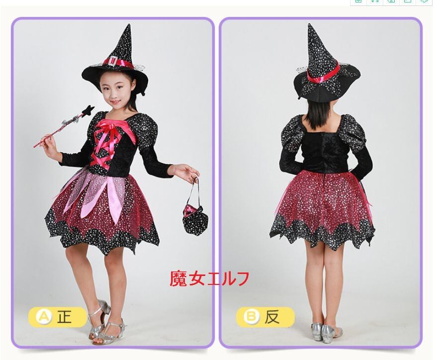 ハロウィン 魔女 仮装 ワンピース 子供服 大人 子供 コスプレ衣装 4点セット(90-160cm)