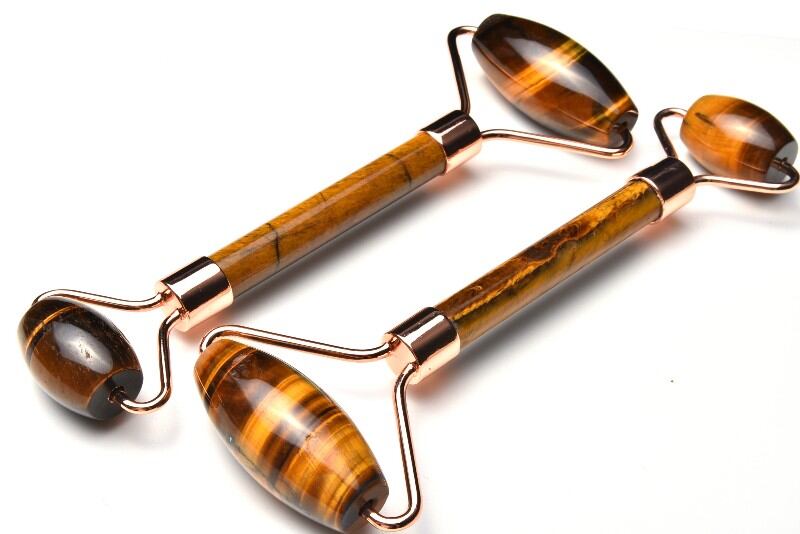 タイガーアイ 145x56mm 美顔ローラー マッサージ棒(ピンクゴールドカラー)_B593-7