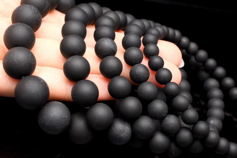 希少フロスト加工 シュンガイト 7.5mm ブレスレット_B771-75