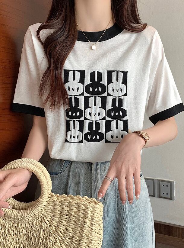 【大きいサイズL-4XL】【春夏新作】ファッションカットソー♪ホワイト/ブラック2色展開◆
