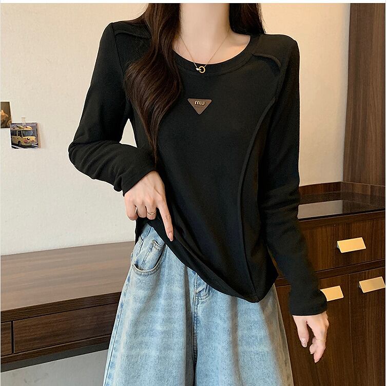 【大きいサイズL-4XL】【秋冬新作】ファッションTシャツ♪ブラック/ブラウン/アンズ3色展開◆