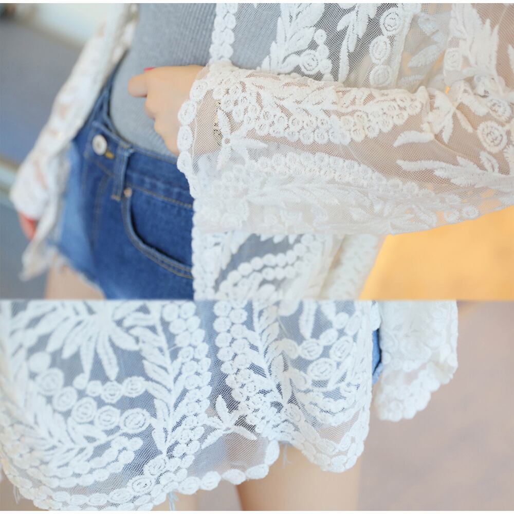 【日本倉庫即納】 レース カーディガン 薄手 夏 レディース クローシェ編み 長袖