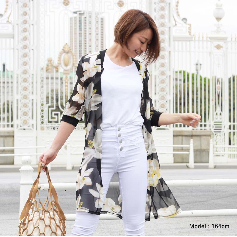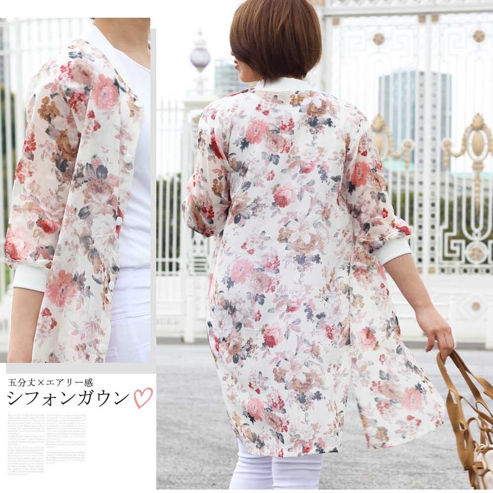 【日本倉庫即納】 花柄ガウン レディース シフォンカーディガン 薄手 カーデ