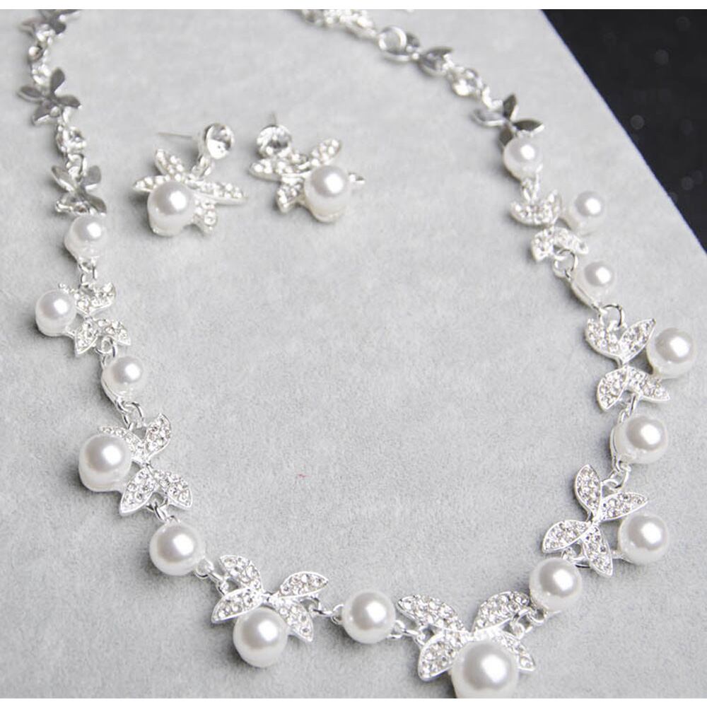 【日本倉庫即納】 ネックレス ピアス パール ビジュー 2点セット パーティー ウェディング