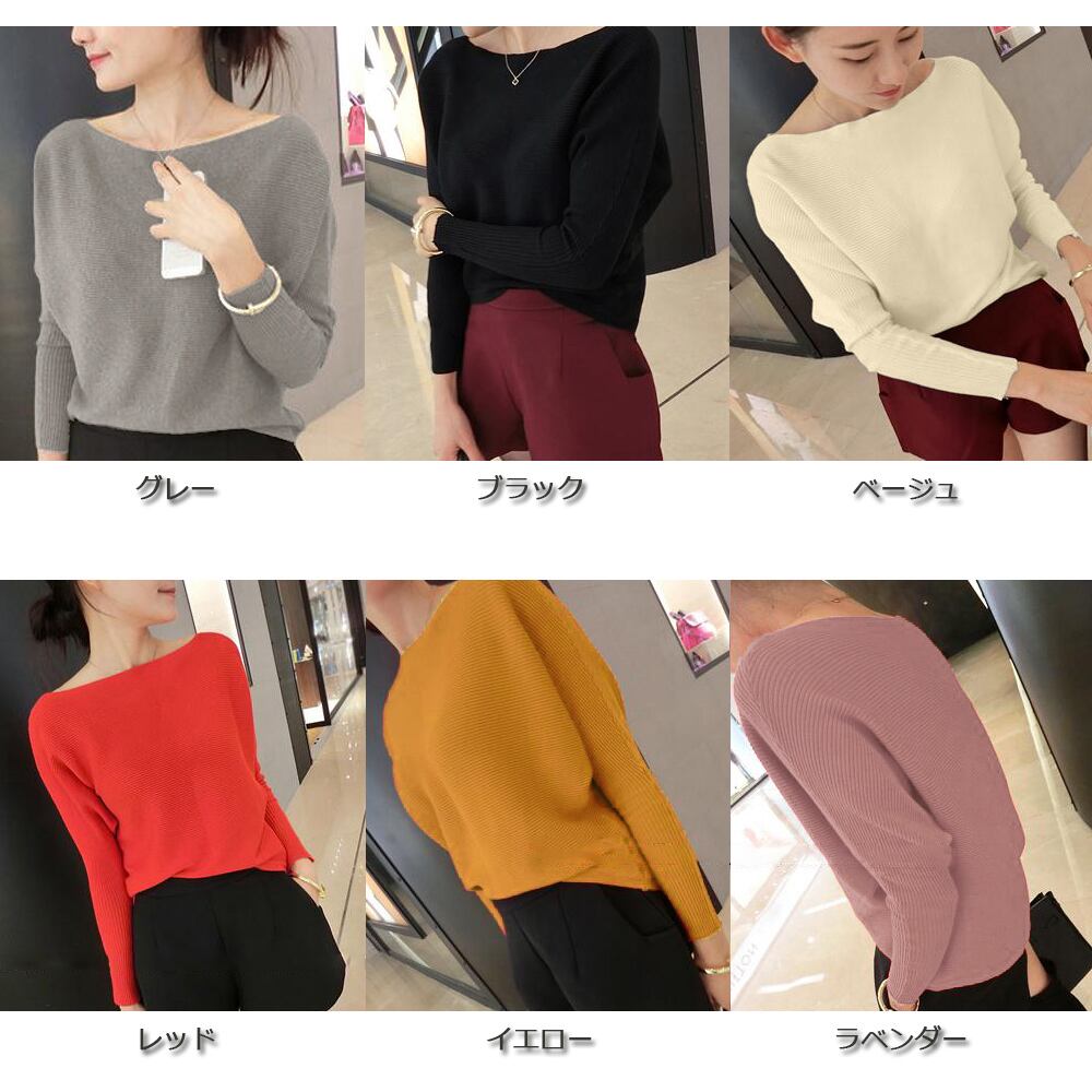 【日本倉庫即納】 ニット レディース 長袖 ドルマンスリーブ ボートネック ゆったり
