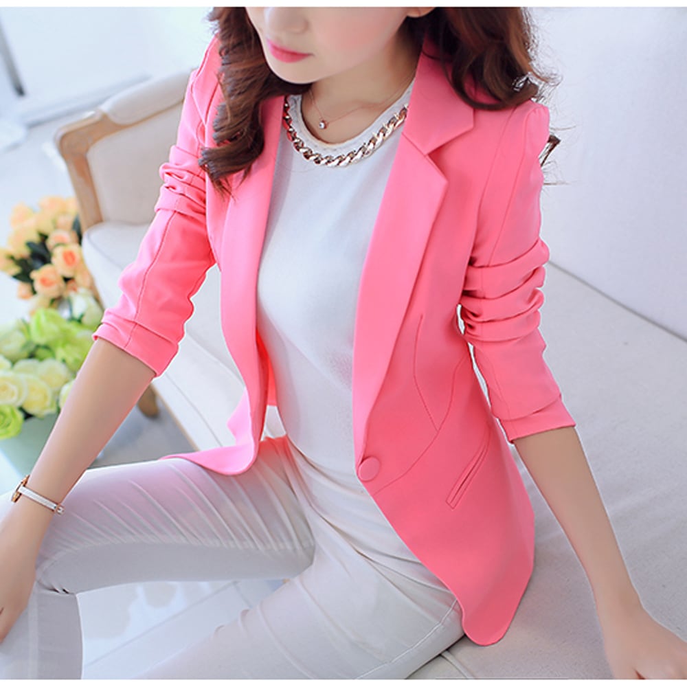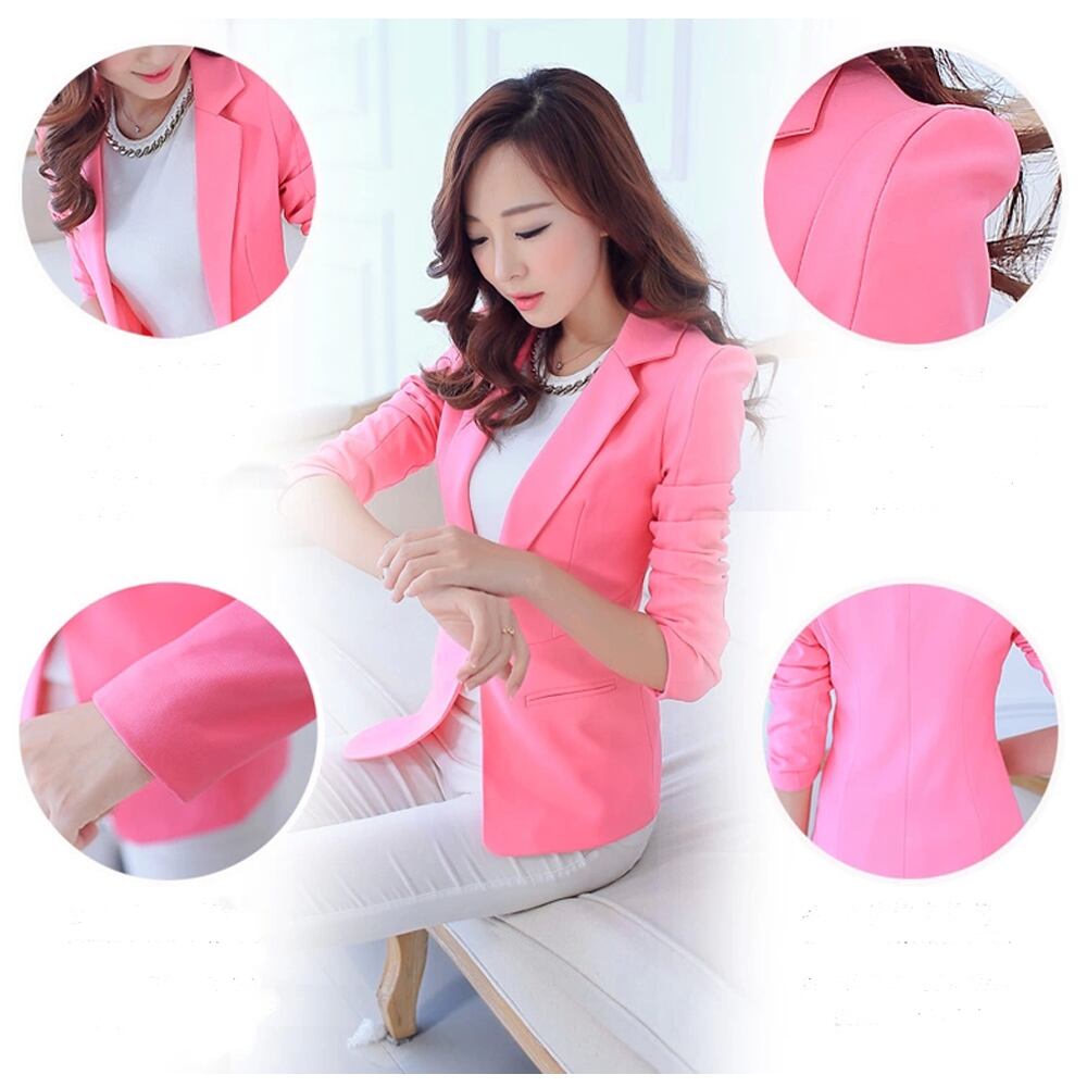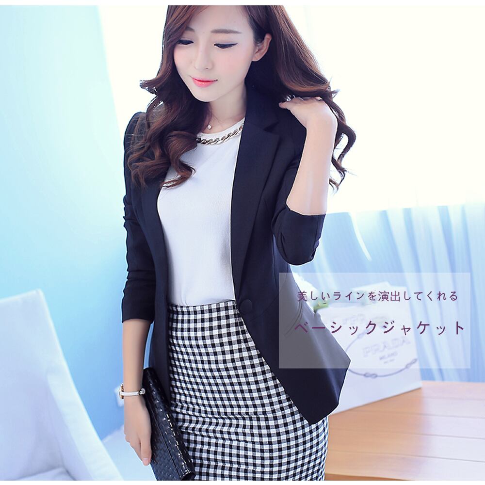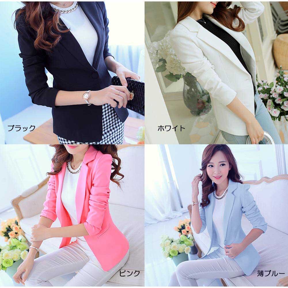 美しいラインを演出してくれる春コーデに欠かせないベーシックジャケット薄手の素材で仕上げた軽い着心地が抜群に魅力的上品に着こなしたりカジュアルに着こなしたりファッションに合わせやすいカラー:ブラック/ホワイト/ピンク/薄ブルー 素材:ポリエステル95%+ポリウレタン5%サイズ:S/M/LS:着丈約57cm 肩幅約32cm 袖丈約55cm バスト約76cm M:着丈約57.5cm 肩幅約33cm 袖丈約57cm バスト約78cm L:着丈約58cm 肩幅約35cm 袖丈約58cm バスト約80cm 裏地:あり伸縮性:なし透け感:なし生産国:中国※すべて平置きサイズです。(採寸方法違いより、多少の誤差がございますので、ご了承ください。)※海外輸入品のため、商品の細部仕様は予告なく変更になる場合がございます。交換/返品対象外になりますので、ご了承下さい。