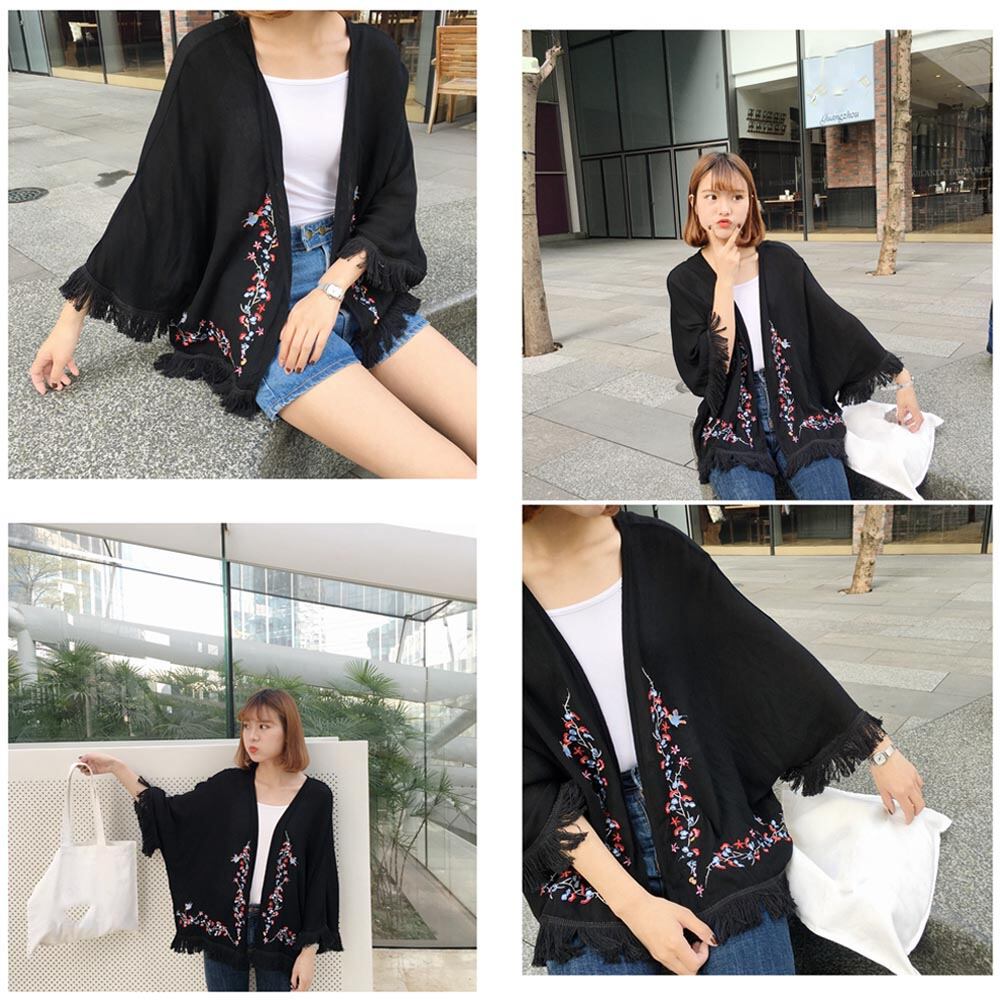 【日本倉庫即納】 ショートカーディガン 刺繍入り ガウン レディース 羽織る タッセル ボヘミア
