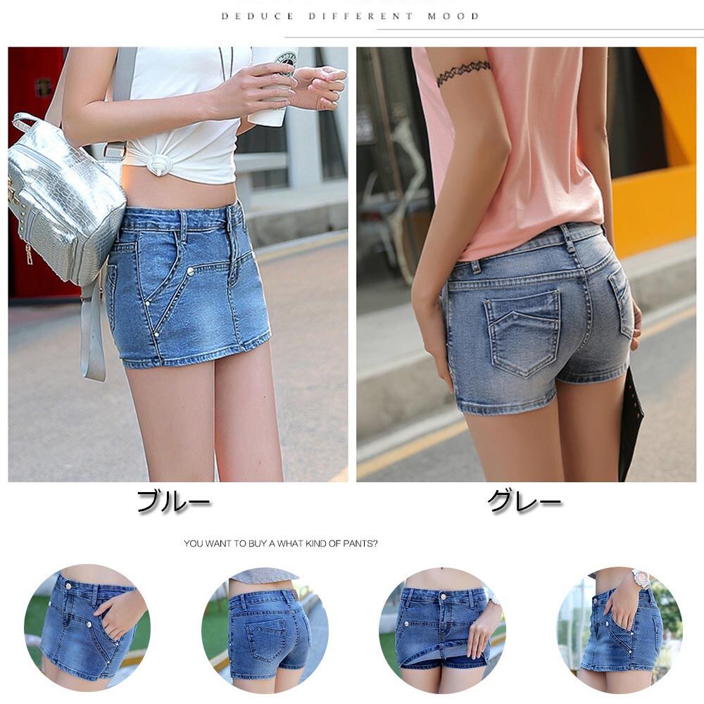 フロントからスカートに見えて実はパンツなので動いても安心なデニムパンツ/>トップスを問わずどんなコーデにもばっちりハマる程よい美脚効果の丈感/>女性らしい体のラインを美しく魅せて、シンプルでデイリーに活躍間違いなし/>カラー:ブルー/グレー/>素材:綿65%+ポリエステル35%/>サイズ:S/M/L/XL/>着丈:24/24/25/25/>股下丈:5/5/6/6/>ウエスト:64/68/71/74/>ヒップ:82/84/86/88/>わたり:44/44/44/44/>裏地:なし/>伸縮性:若干あり/>透け感:なし/>生産国:中国/>※すべて平置きサイズです。(採寸方法違いより、多少の誤差がございますので、ご了承ください。)/>※海外輸入品のため、商品の仕様は予告なく変更になる場合がございます。交換/返品対象外になりますので、ご了承下さい。/>※製品にサイズタグ等が無いものがありますが不良ではございません、ご了承くださいませ。/>※メーカー側生産上の問題で生産時期によって裏地の柄が異なる場合はございます。交換/返品対象外になりますので、ご了承下さい。/>