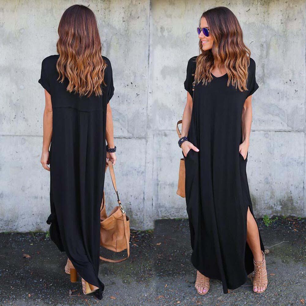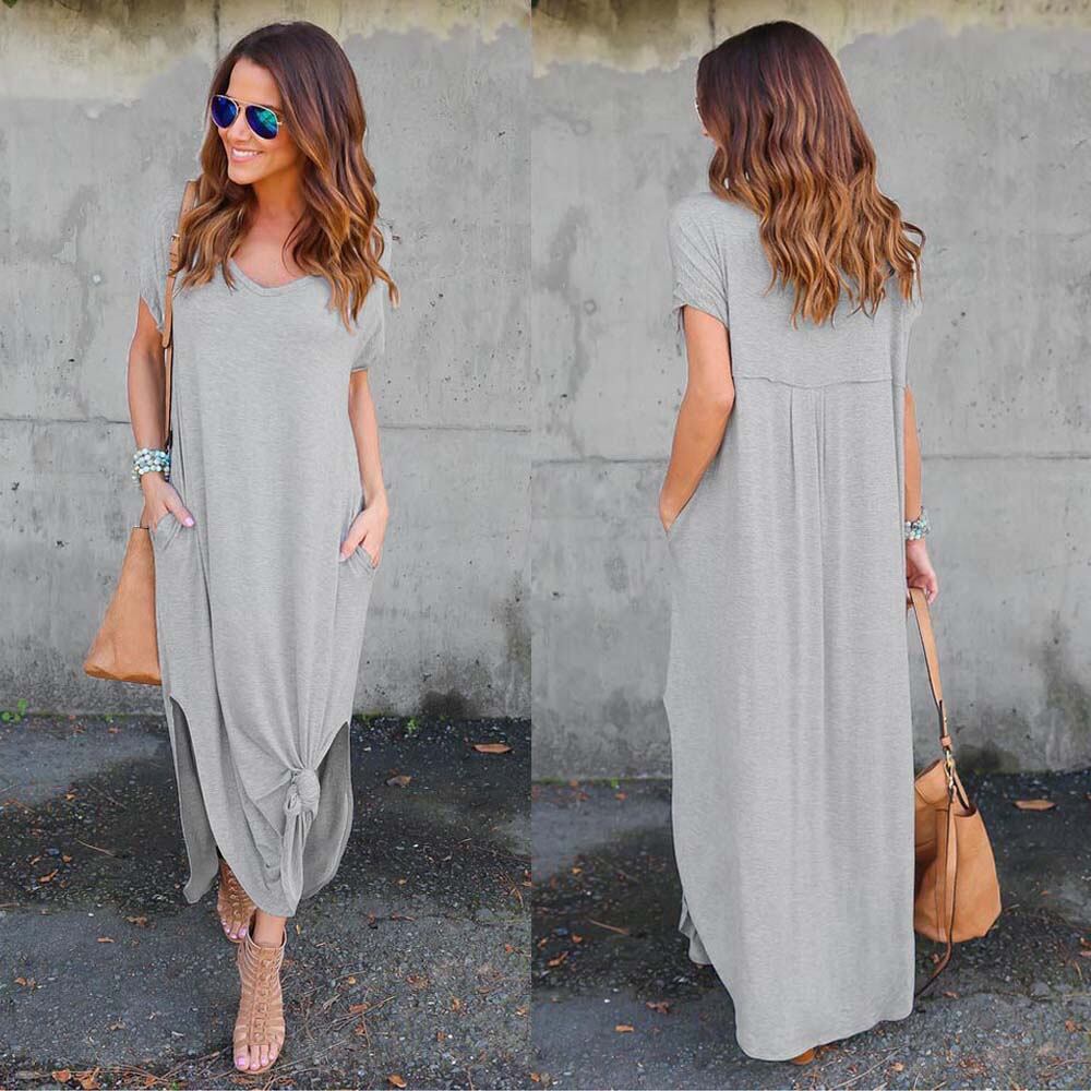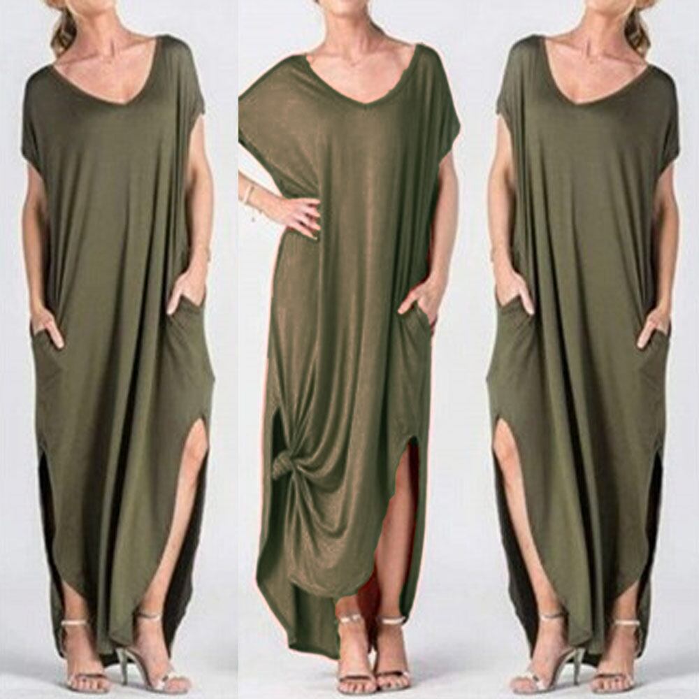 シンプルのデザインでデイリー使いに最適なVネックマキシワンピースサイドにスリット加工入りで女性らしいセクシーさをアピールする大人の1枚春夏はもちろん、ジャケットやカーディガンなどと合わせて秋先まで着用可能カラー:ブラック/グレー/ロイヤルブルー/カーキ/ピンク素材:ポリエステル70%+綿30%サイズ:ワンサイズ総丈:約130cm ゆき:約45cm 身幅:約45cm 胸囲:約90cm ウエスト:約100cm ヒップ:約110cm裏地:なし伸縮性:なし透け感:なし生産国:中国※すべて平置きサイズです(採寸方法違いより、多少の誤差がございますので、ご了承ください)。※海外輸入品のため、商品の細部仕様は予告なく変更になる場合がございます。交換/返品対象外になりますので、ご了承下さい。