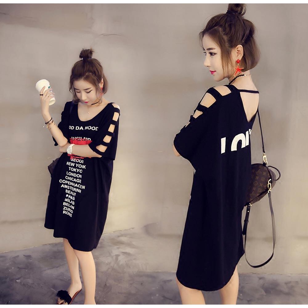 【日本倉庫即納】 ロゴtシャツ レディース おしゃれ 5分袖 チュニック ミニワンピース