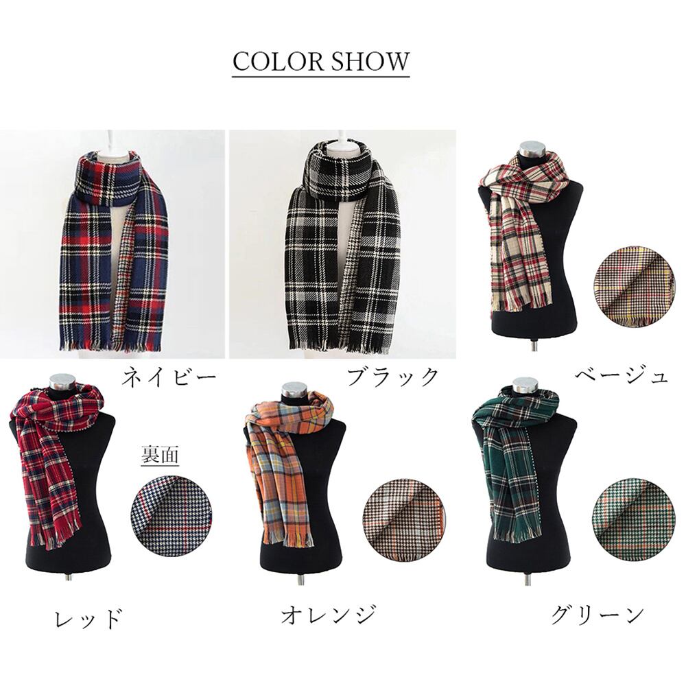 両面マフラー 秋冬 ストール 肩掛け ストール おしゃれ上質なカシミヤタッチの保温素材で仕上げた大判柄物マフラーくるくると首に巻けば暖かくて、コーデのアクセントにもなれるさらっと肩掛けで上品な印象に、1枚でたくさんのアレンジが楽しめる素材:アクリル100%カラー:ネイビー/ブラック/ベージュ/グリーン/オレンジ/レッドサイズ:約184cm×55cm伸縮性:なし透け感:なし生産国:中国※すべて平置きサイズです(採寸方法違いより、多少の誤差がございますので、ご了承ください)。※海外輸入品のため、商品の細部仕様は多少異なる場合がございます。予めご了承の上、ご注文お願い致します。