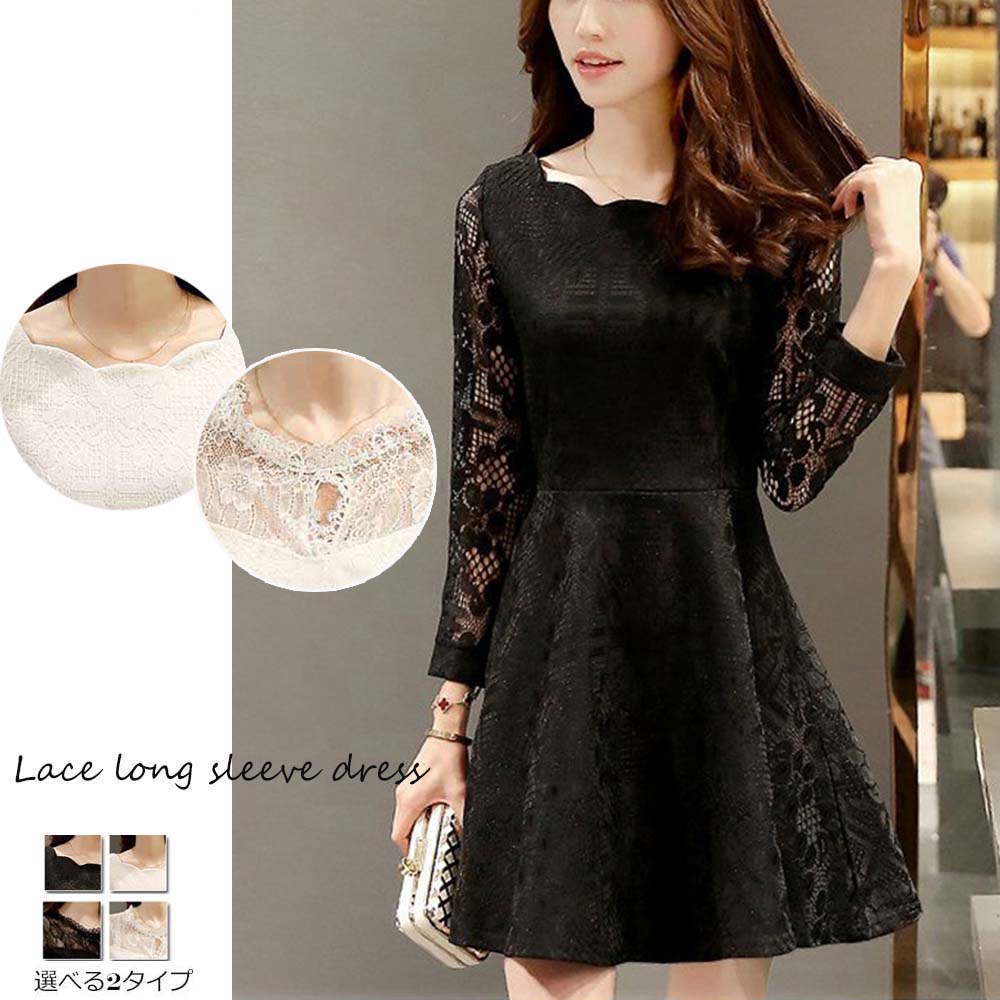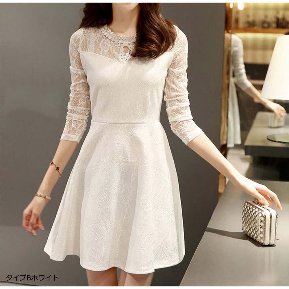 【日本倉庫即納】 長袖ワンピース レディース きれいめ レース ワンピース 結婚式 ドレス
