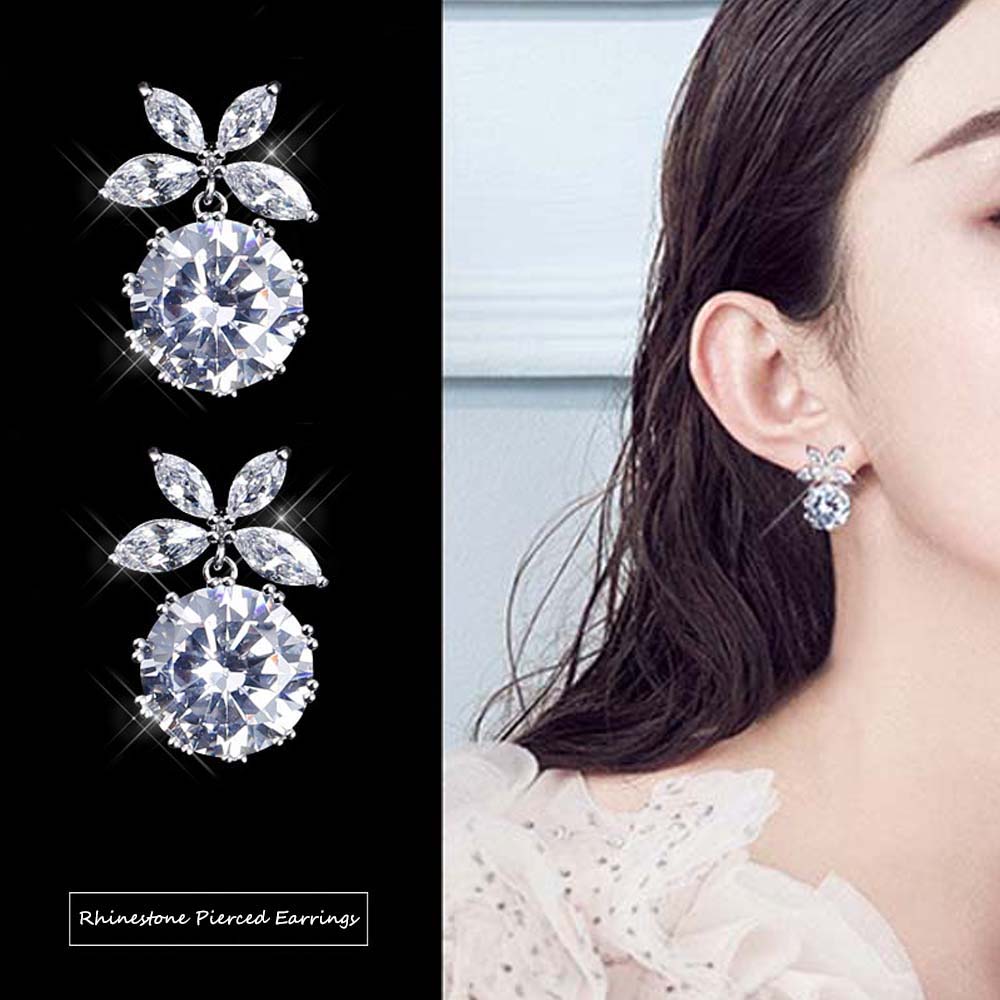 【日本倉庫即納】 ラインストーン 大粒 ピアス 大ぶり 花モチーフ キラキラピアス プレゼント