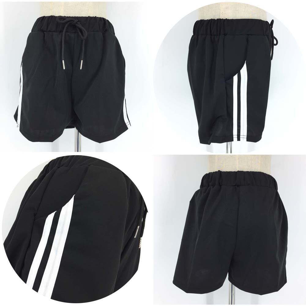 トップス問わずコーデ力が高いサイドラインがスポーティーなショートパンツハイウエストデザインで脚長&美脚効果が絶大、トップスインしてスタイルアップ裾広仕様なので気になる太ももをカバー、足を細く見せてくれることもポイントカラー:ブラック素材:ポリエステル70%+綿30%サイズ:M/L/XL/XXL着丈:約33/33/35/35cm股下丈:約7/7/7/7cmウエスト:約50-95/50-95/54-100/54-100cmヒップ:約95/100/105/110cmわたり:約58/60/62/64cm裏地:なし伸縮性:なし透け感:なし生産国:中国※すべて平置きサイズです(採寸方法違いより、多少の誤差がございますので、ご了承ください)。※海外輸入品のため、商品の細部仕様は予告なく変更になる場合がございます。交換/返品対象外になりますので、ご了承下さい。