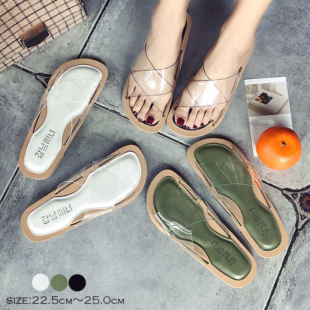 【日本倉庫即納】 ミュール レディース サンダル スリッパ ビーチサンダル クリアストラップ