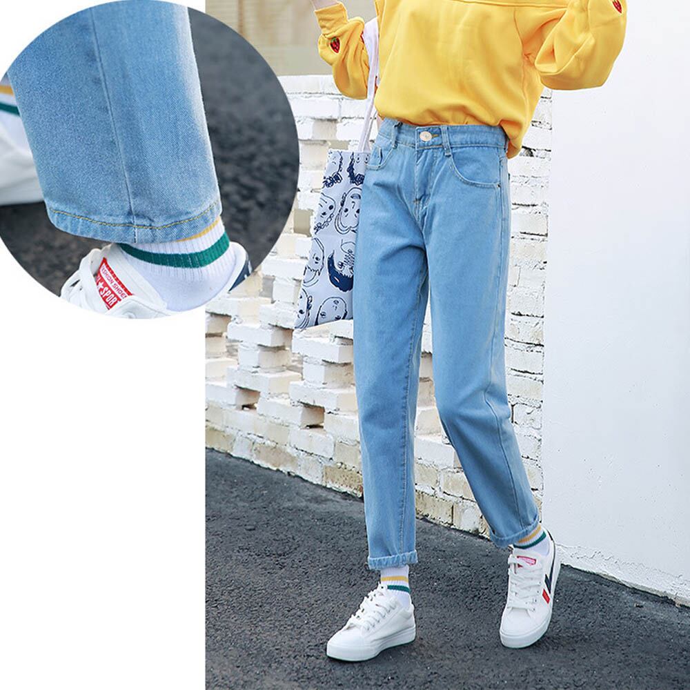【日本倉庫即納】 デニムパンツ レディース ハイウエスト ストレートズボン 九分丈 カジュアル