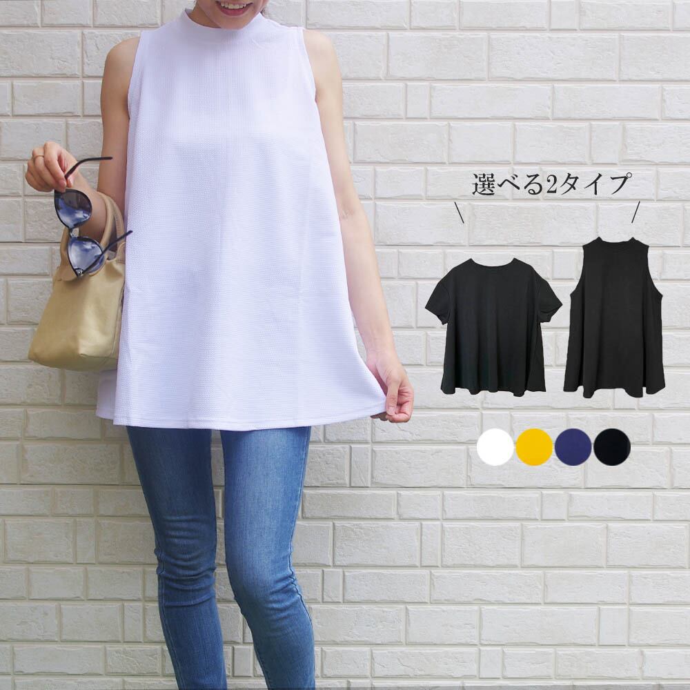 【日本倉庫即納】 チュニック レディースカットソー ノースリーブ半袖 フレアAライン 体系カバー