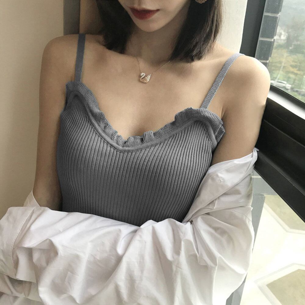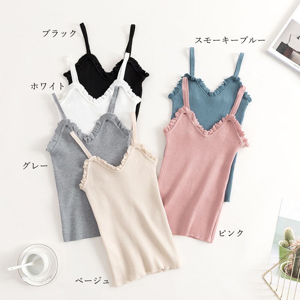 【日本倉庫即納】 サマーニットキャミソール フリル リブニット vネック キャミソール