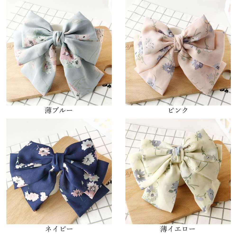 大振りなリボンに小花柄プリントが可愛いヘアクリップ女の子らしさが全開のアイテム、デートは勿論、パーティーや特別な日などにもお子様にも使用できるので、親子でお揃いコーデも可愛いですねカラー:薄ブルー/ピンク/ネイビー/薄イエロー素材:ポリエステル100%サイズ:約19cm×15cm生産国:中国包装に関しての注意点:こちらの商品は激安で販売しているため、化粧箱は付いていませんが、商品に傷付かないよう簡易包装で発送とさせていただきます。※海外輸入品のため、商品の細部仕様は予告なく変更になる場合がございます。交換/返品対象外になりますので、ご了承下さい。