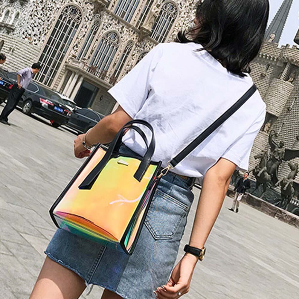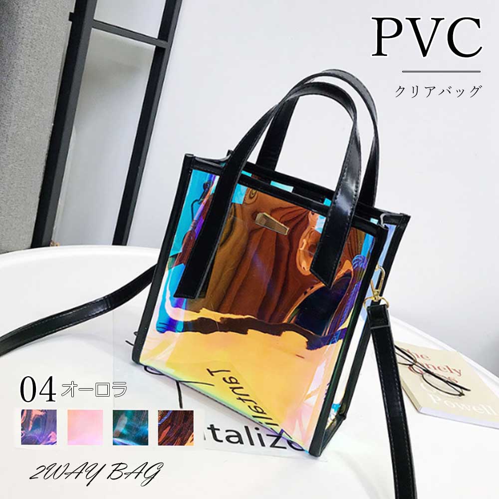 ポーチ付き、2way仕様のオーロラバッグですハンドバッグにもショルダーバッグにもなるのでシーンに合わせて仕様変更できます容量は割と入るのでデイリーユース使いからデート使い、これからの季節はアウトドアシーンにも活躍できます、デザインが個性的なので目立つこと間違いなしカラー:ブラック/ピンク/シルバー/ゴールド素材:pvc/ビニールサイズ:高さ:約23cm 底横幅:約22cm マチ:約8cm 持ち手:約12cm ショルダー:約65-117cm重さ:約315g裏地:なし内ポケット:なし生産国:中国※すべて平置きサイズです(採寸方法違いより、多少の誤差がございますので、ご了承ください)。※海外輸入品のため、商品の細部仕様は予告なく変更になる場合がございます。交換/返品対象外になりますので、ご了承下さい。