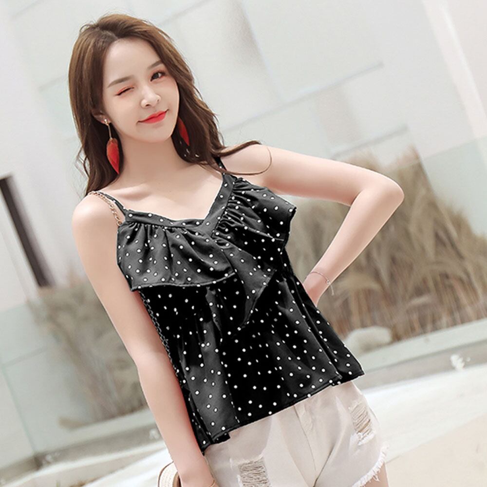 【日本倉庫即納】 フリルキャミソール vネック 水玉 ドット柄 トップス レディース 春夏