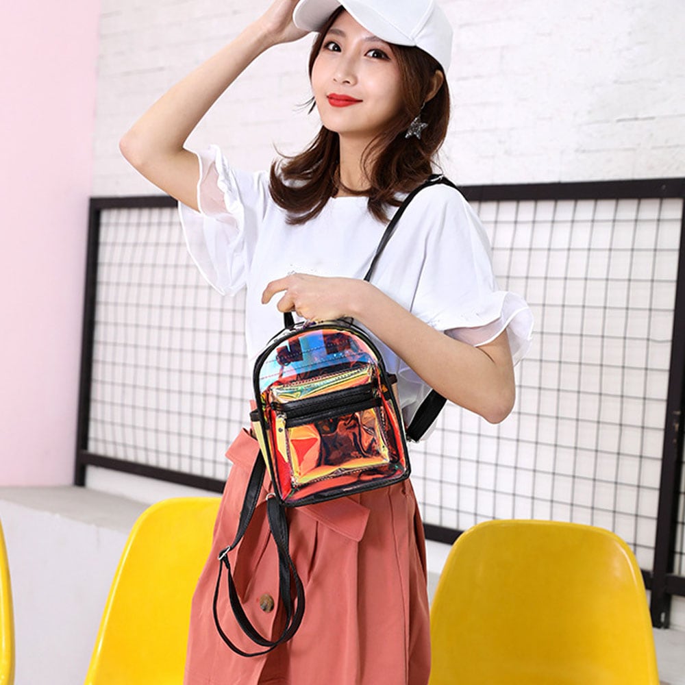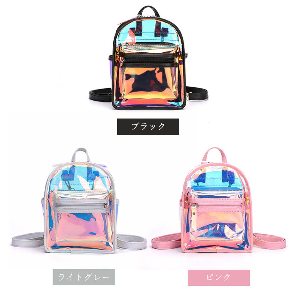 【日本倉庫即納】 ポーチ付き リュック レディース おしゃれ クリアバッグ オーロラ ビニール