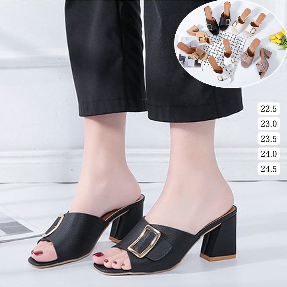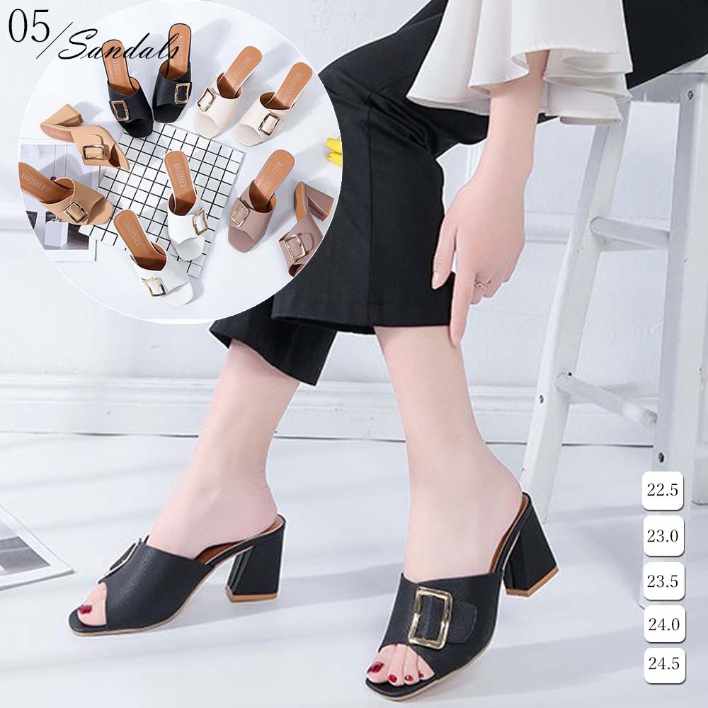 【日本倉庫即納】 チャンキーヒール サンダル オープントゥ サンダル レディース ミュール