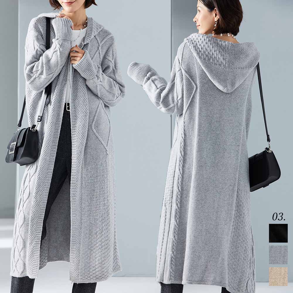 コーディガン 秋 ニットコート ニット アウター毎年人気のニットコーディガンに新作が登場トッパー仕様の緩めニット、見た目のフェミニンさも勿論のこと、着心地も抜群デートや、ちょっとそこまでの羽織りとしても活用できる万能アイテムです素材:綿65%ポリエステル35%カラー:ブラック/グレー/ベージュサイズ:ワンサイズ着丈:約95cm 肩幅:約46cm 袖丈:約62cm ゆき:約85cm 身幅:約50cm 胸囲:約100cm(トッパー仕様)裏地:なし伸縮性:若干あり透け感:なし生産国:中国※すべて平置きサイズです(採寸方法違いより、多少の誤差がございますので、ご了承ください)。※海外輸入品のため、商品の細部仕様は多少異なる場合がございます。予めご了承の上、ご注文お願い致します。