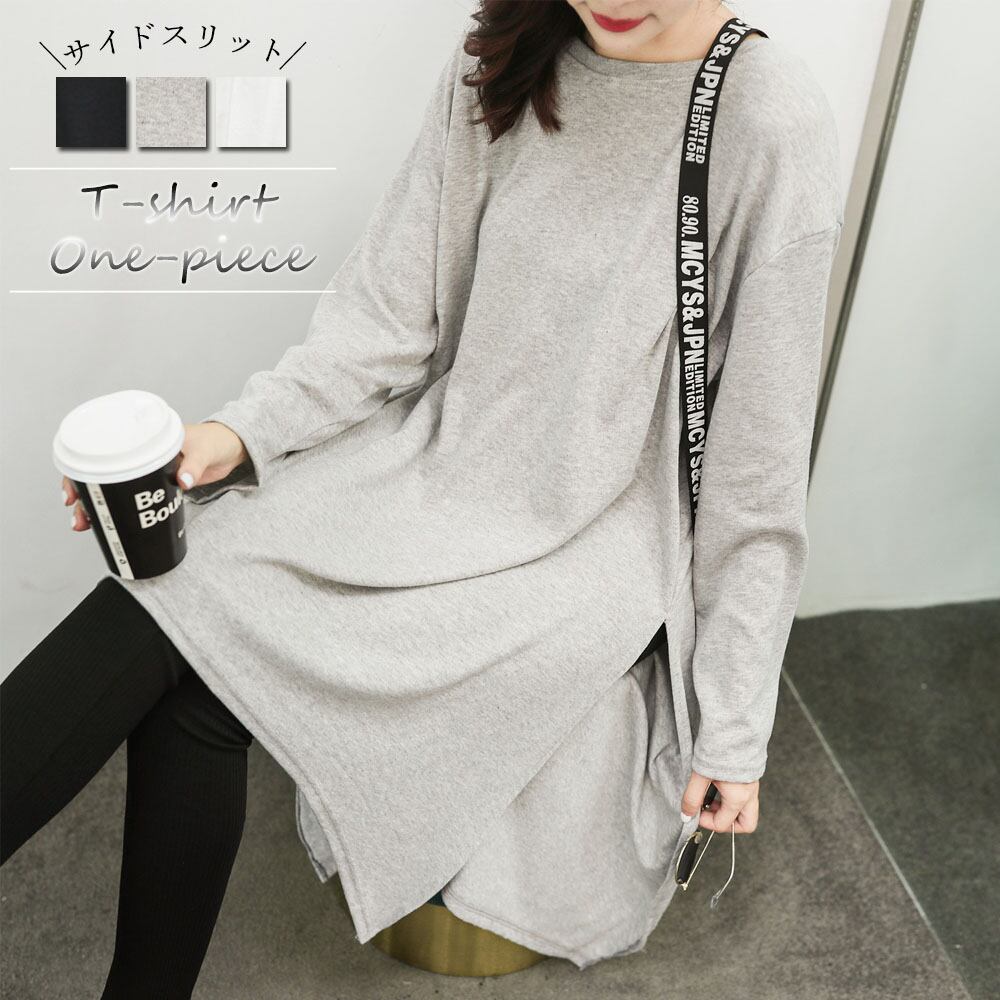 【日本倉庫即納】 スリットtシャツ レディース ゆったり ワンピース ロング丈 チュニック