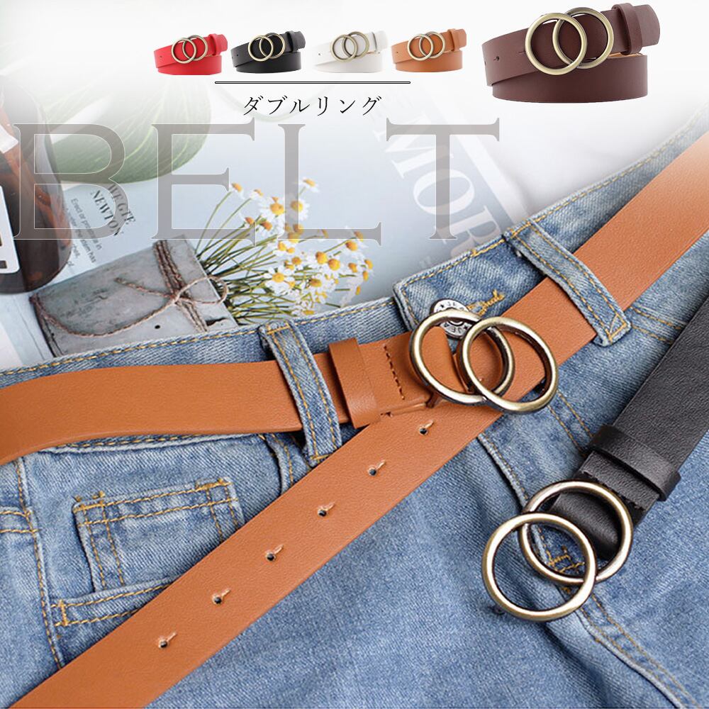 【日本倉庫即納】 レザー ベルト レディース おしゃれ ダブルリングベルト サークルバックル