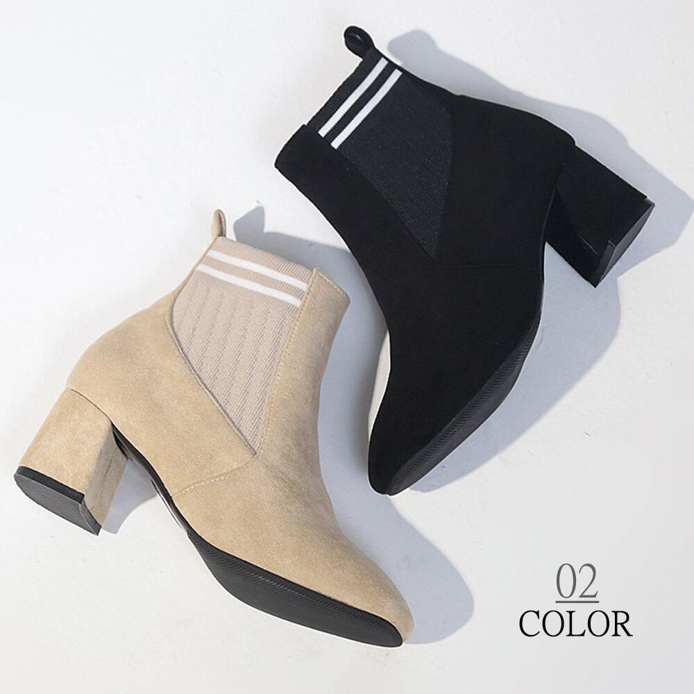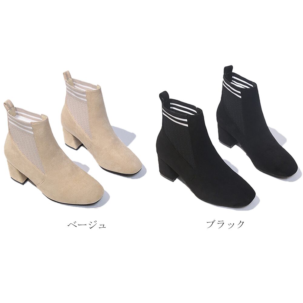 【日本倉庫即納】 ブーティー ブーツ レディース ショートブーツ 太ヒール サイドゴア 2ライン