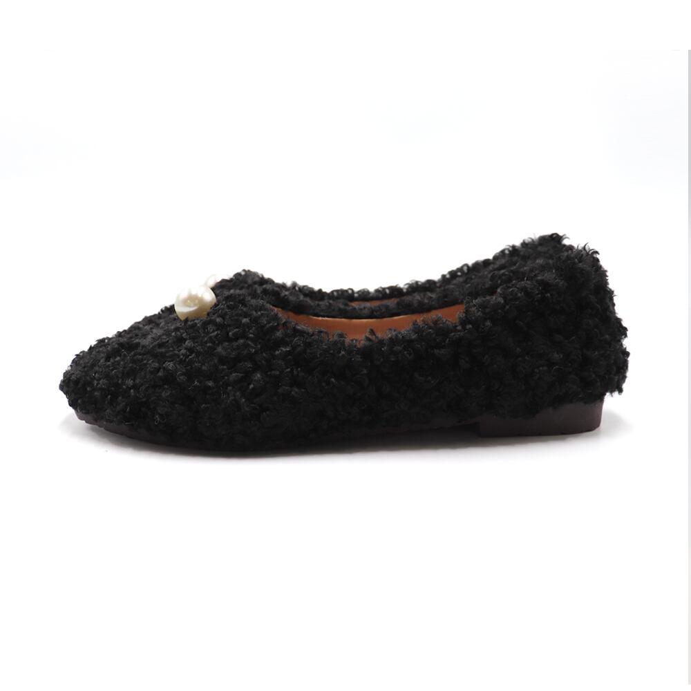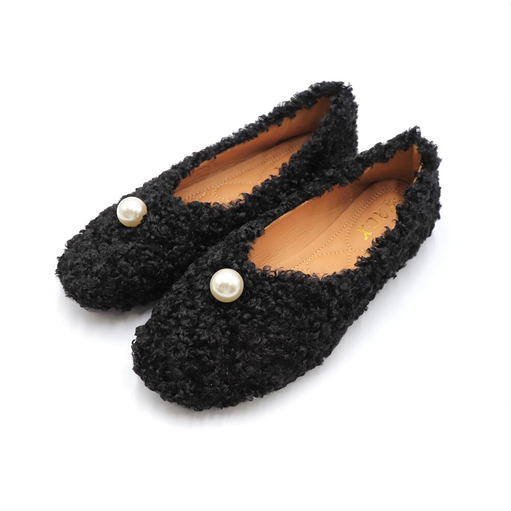 【日本倉庫即納】 パンプス レディースシューズ モカシン ボア ファー ぺたんこ もこもこ 秋冬