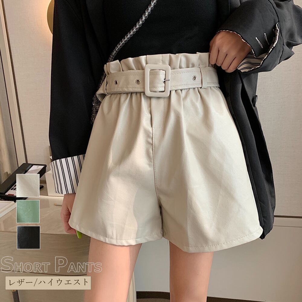 しなやかな素材感、プチプラでも高見えするベルト付きPUレザーハイウエストショートパンツベーシックなシンプルデザインで合わせやすく、これからのシーズンに欠かせない脚長美脚効果もあるショートパンツは1つ持っていると着回しができるので、コーデの幅も広がり、大人っぽくクールな印象を与えてくれるカラー:ブラック/ベージュ/グリーン素材:合成皮革+ポリエステル100%サイズ:ワンサイズ着丈:約37cm 股下:約6cm ウエスト:約56-80cm(ゴム仕様) ヒップ:約104cm もも周り:約62cm裏地:なし伸縮性:なし透け感:なし生産国:中国※すべて平置きサイズです(採寸方法違いより、多少の誤差がございますので、ご了承ください)。※海外輸入品のため、商品の細部仕様は予告なく変更になる場合がございます。予めご了承の上、ご注文お願い致します。