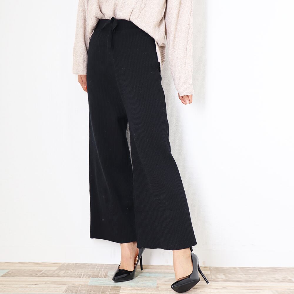 【日本倉庫即納】 ニットパンツ レディース 秋冬 リブニット ワイドパンツ ロングパンツ