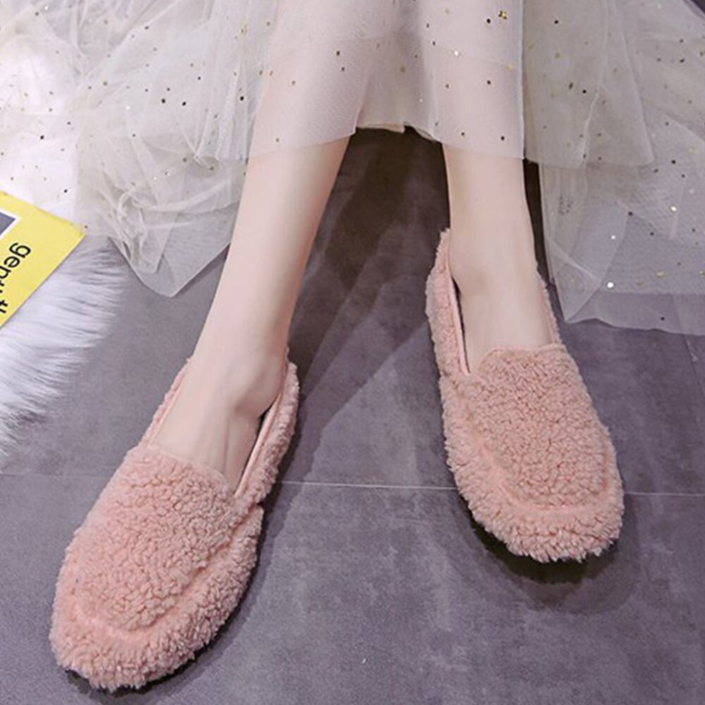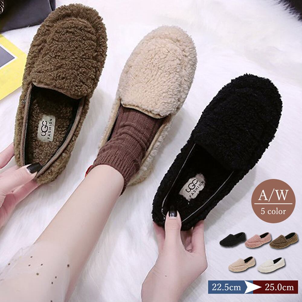 【日本倉庫即納】 ボア パンプス レディース ぺたんこ 靴 秋冬 もこもこシューズ ローヒール