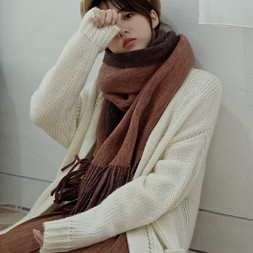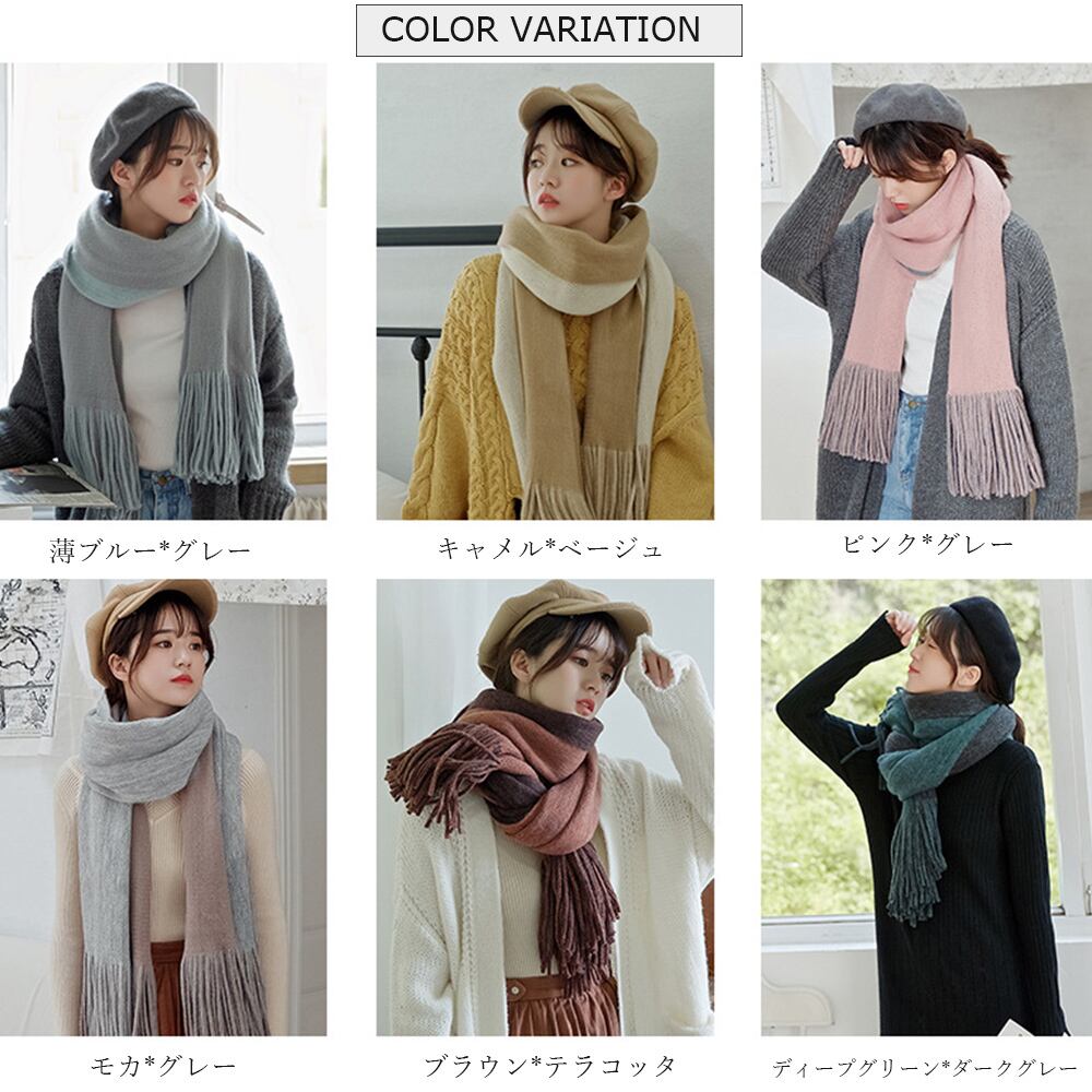 包み込まれるような上質な肌触り、ふんわり柔らかな素材感の大判マフラー保温に優れており、形崩れしにくく、持ち運びにも最適丁度いいボリュームでかさばらない、ふわりと揺れるフリンジ、洋服にも馴染みやすい色合いできちんと感のある上品なアイテムカラー:ブラウン*テラコッタ/キャメル*ベージュ/ピンク*グレー/薄ブルー*グレー/モカ*グレー/ディープグリーン*ダークグレー素材:アクリル100%サイズ:約164cm×38cm伸縮性:あり透け感:なし生産国:中国※すべて平置きサイズです(採寸方法違いより、多少の誤差がございますので、ご了承ください)。※海外輸入品のため、商品の細部仕様は予告なく変更になる場合がございます。交換/返品対象外になりますので、ご了承下さい。