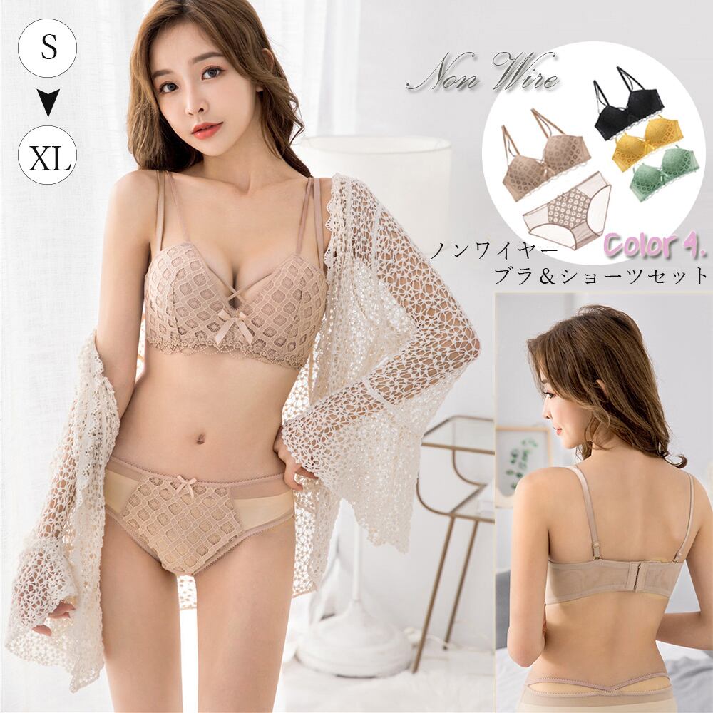 【日本倉庫即納】 ブラジャー ショーツ セット メッシュ パッド付き ノンワイヤー ブラジャー