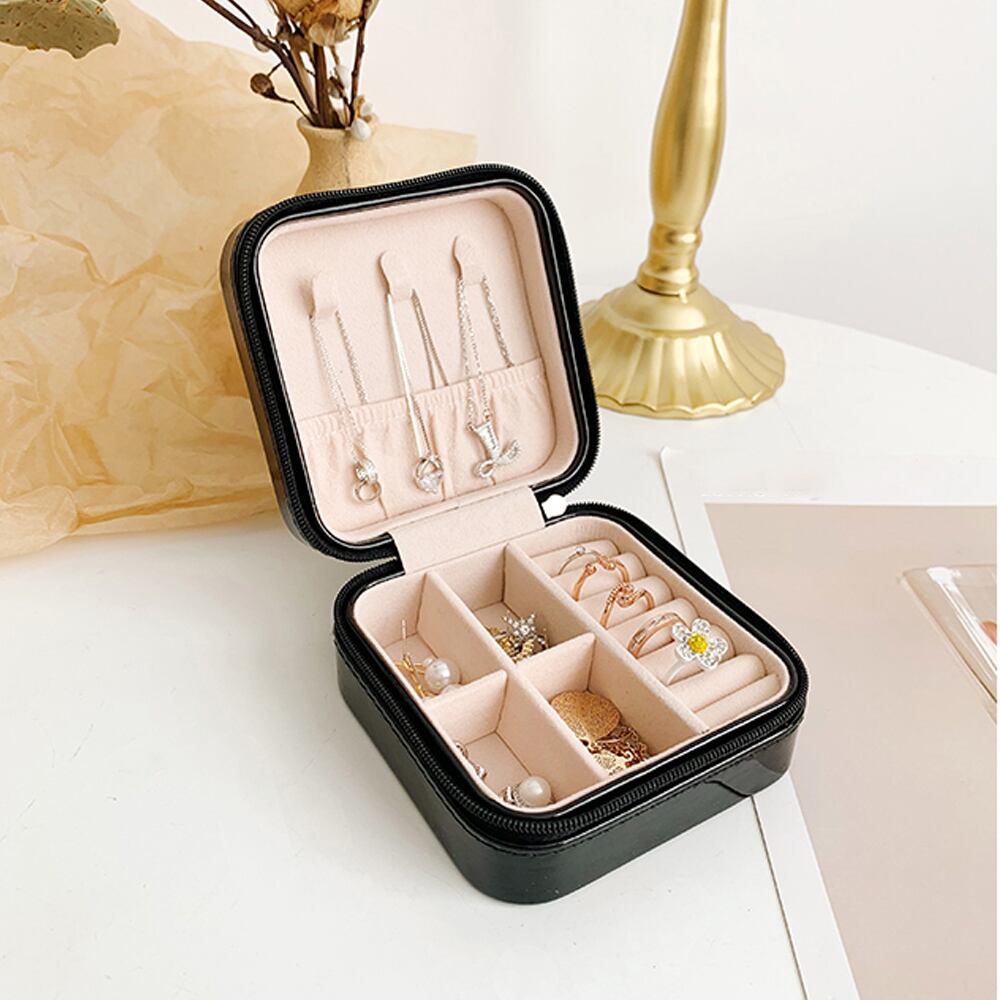 ミニサイズで旅行やパーティシーンなどに最適なポータブルアクセサリーボックスファスナー開閉口が大きく開いて、中身が一目瞭然で出し入れも楽ちんコンパクトでもリング、ネックレス、ピアスやイヤリングなどまとめて収納できる万能ケース、しかも仕切れがあるのでごちゃごちゃにならない外に持ち出すのはもちろん、部屋の中で開けてさりげなくディスプレイ、インテリアアイテムとしても使えるカラー:ブラック/ホワイト/ピンクベージュ素材:合成皮革-ポリエステルサイズ:高さ:約5cm 底横幅:約10cm マチ:約10cm重さ:約120g生産国:中国※すべて平置きサイズです(採寸方法違いより、多少の誤差がございますので、ご了承ください)。※海外輸入品のため、商品の細部仕様は予告なく変更になる場合がございます。予めご了承の上、ご注文お願い致します。