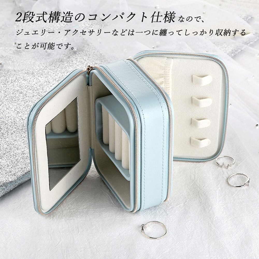【日本倉庫即納】 コンパクト ジュエリーボックス アクセサリーケース 携帯用 鏡付き リング