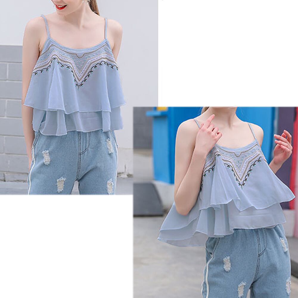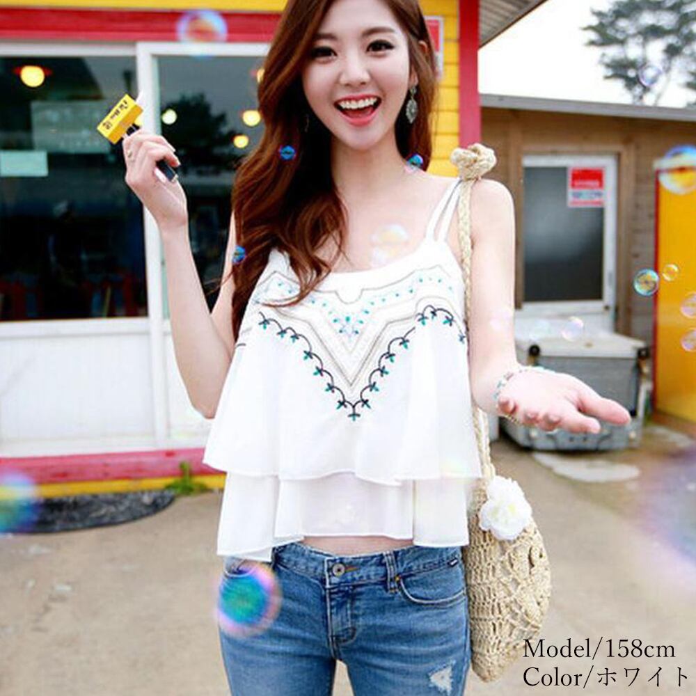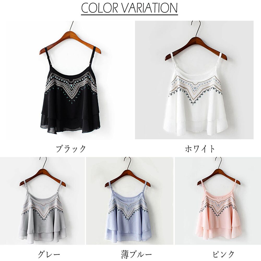 【日本倉庫即納】 刺しゅう フレアキャミソール レディース ゆったり シフォン キャミトップス