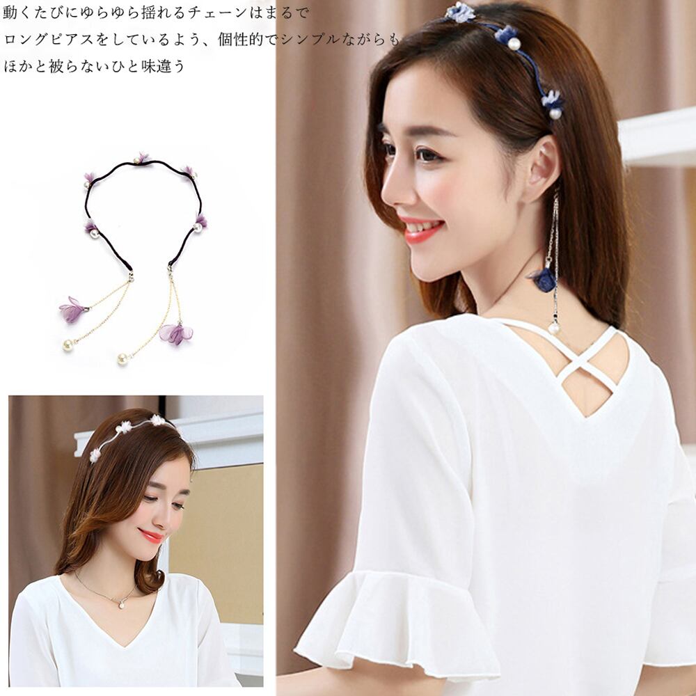 【日本倉庫即納】 2way パール カチューシャ チャーン付き ヘッドバンド ヘアバンド